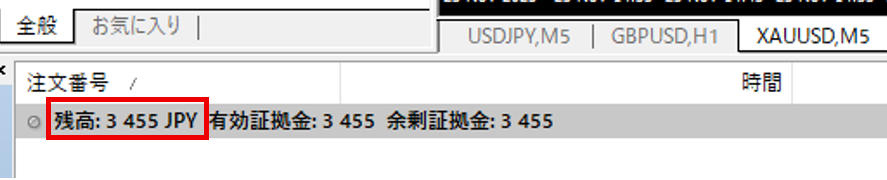 入金完了後は、MT4・MT5の指定口座に下記赤枠のように「入金した残高」と「入金額に応じたクレジット(ボーナス)」が反映されていることをご確認ください。