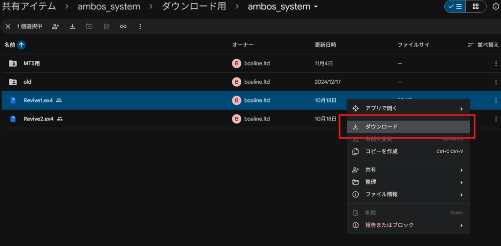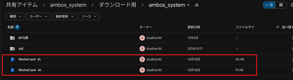 ①システムを下記ドライブからMT4版ツールのダウンロード可能です。