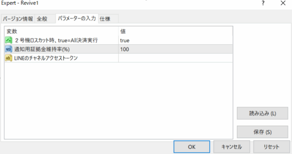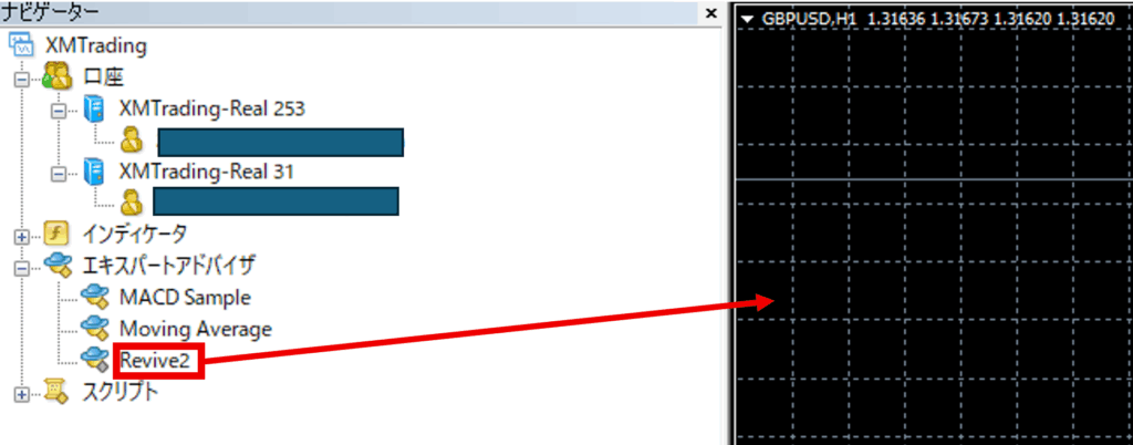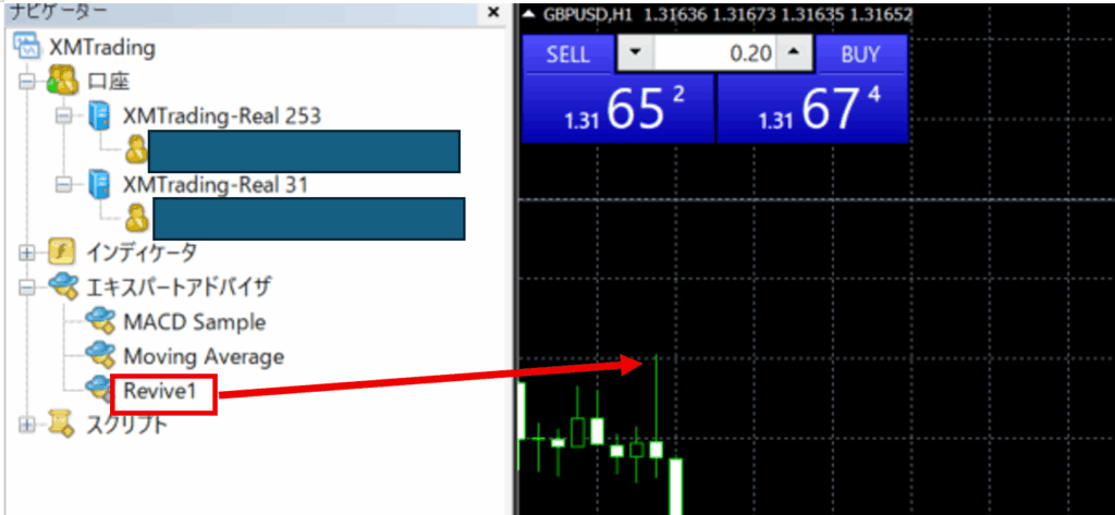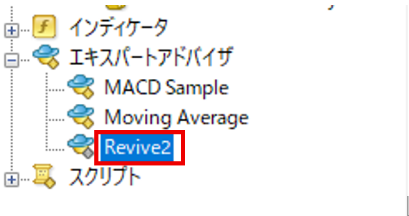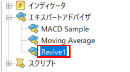 なお、Revive1.ex4をセットした側を1号機と呼びます。(1号機2号機での証券会社の指定はありません。)
