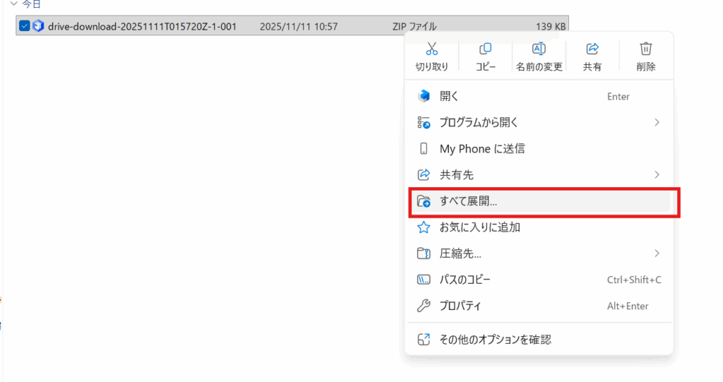 必ず「展開後の解凍されたフォルダ」を利用するようにしてください。