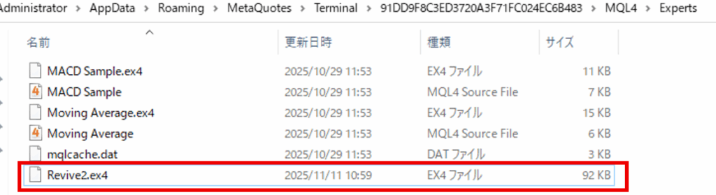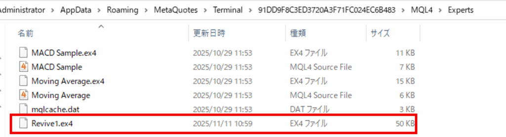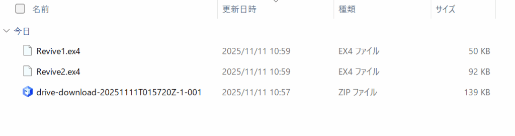 ④ダウンロードしたRevive1.ex4を③へコピーして配置します。